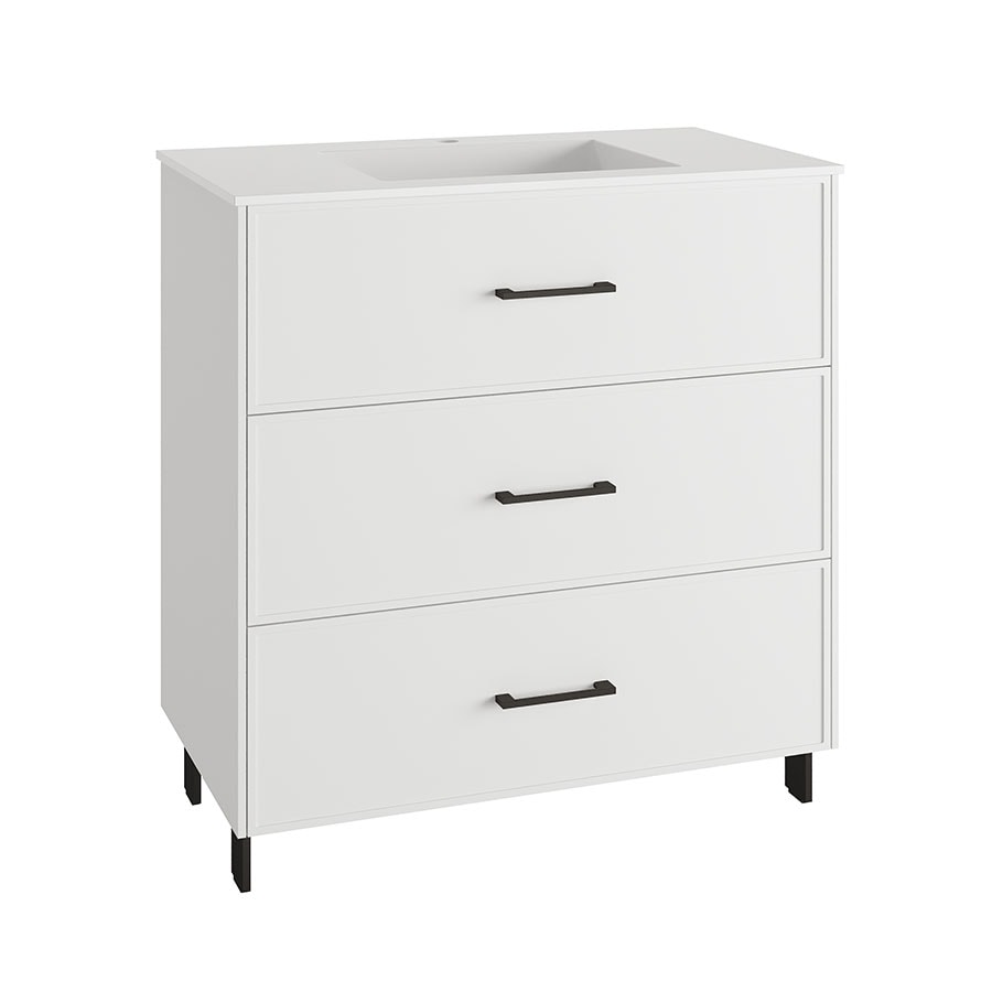 MÓVEL SUSPENSO 100CM 3G PUX BRANCO C/ LAV CERÂMICO