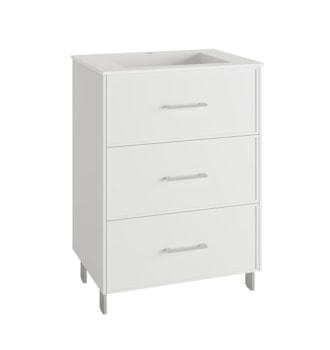 MEUBLE A/PIEDS 60CM 3T POIGNÉE BLANC A/ LAVABO