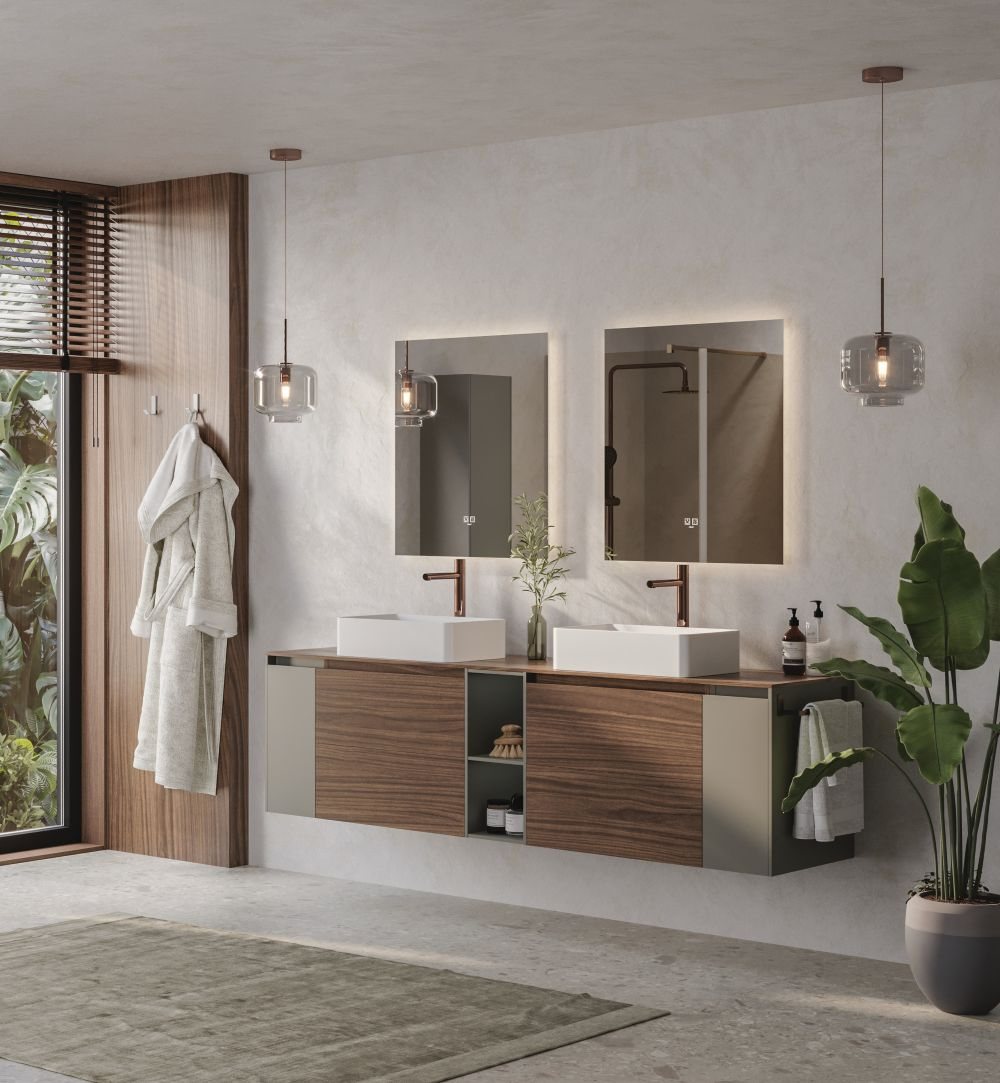 Com múltiplas combinações, acabamentos e soluções funcionais, transforma a casa de banho num ambiente mais organizado, leve e sofisticado — um espaço onde o design se ajusta verdadeiramente a quem o utiliza.